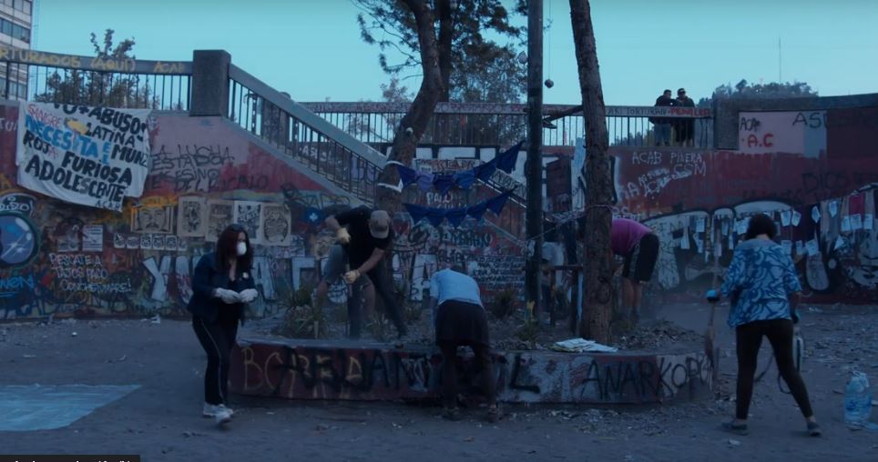 En un costado de la plaza hay un ingreso al Metro que fue transformado por los jóvenes en un espacio simbólico de la revuelta. Es el Jardín de la Resistencia, que el Metro busca recuperar usando el actual regresivo clima político y la marginación de la agenda de las demandas de aquel octubre.