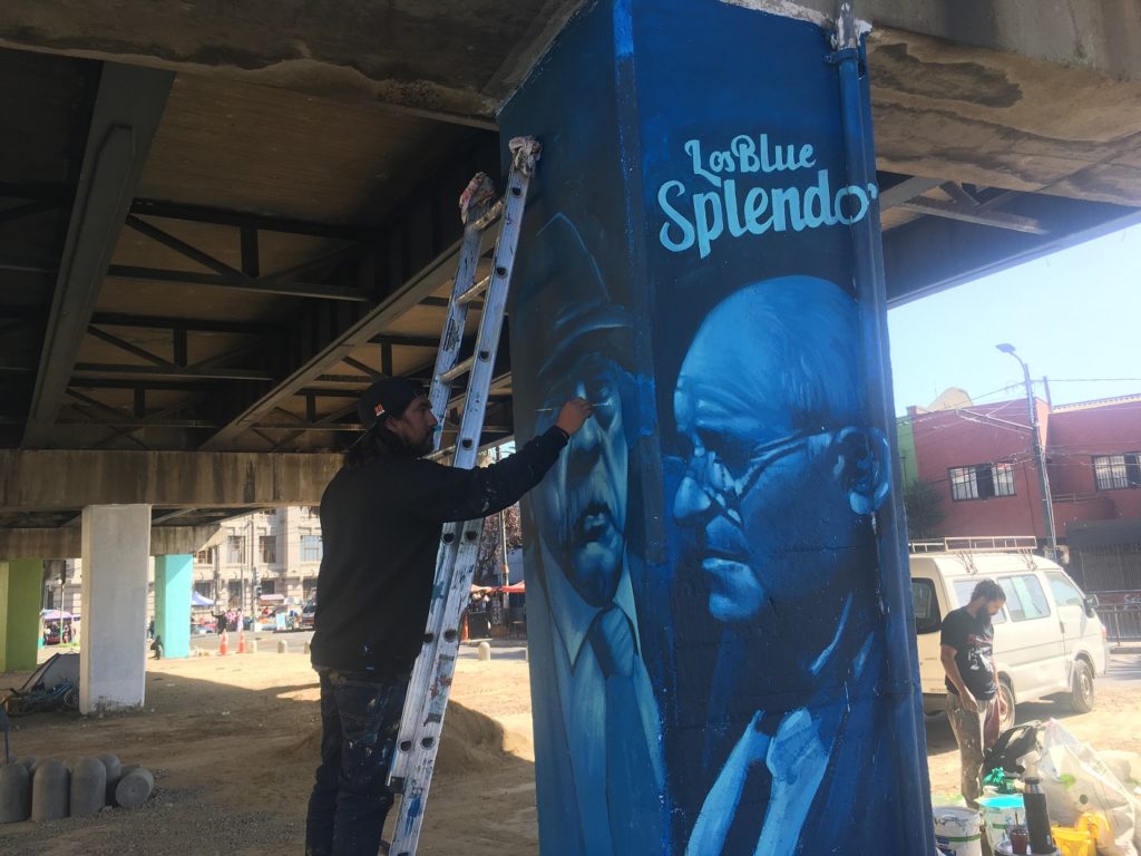 En la tarde, para profundizar más sobre este proyecto de arte popular callejero, me acerqué nuevamente a conversar con el artista que trabajaba en los retratos del músico de los Blue Splendors y Lucy Briceño, enterándome que su nombre es Samir Guzmán, pero que prefiere que se le conozca solo como Samir, que es también su nombre artístico, me dice.