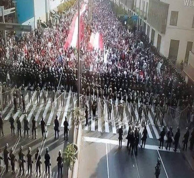 La jornada tuvo como eje una gran marcha en Lima, que está bajo estado de emergencia y amaneció ayer con las principales plazas y calles del centro de la ciudad cercadas por contingentes policiales. El palacio de gobierno y el Congreso fueron rodeados por elementos antimotines y tanquetas. Según información oficial, las autoridades destacamentaron 11 mil policías en la ciudad para seguir la marcha de protesta, quienes lanzaron bombas lacrimógenas contra los manifestantes.