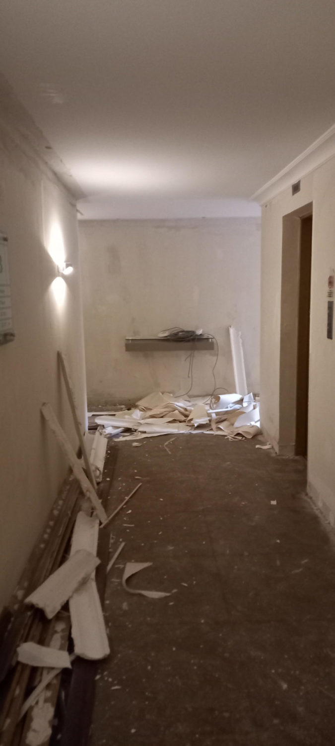 A continuación se aprecia el estado actual de los pasillos del edificio por lo cuales circulan diariamente los residentes, motivo por el cual se le formula un llamado público a la alcaldesa Daniela Peñaloza, para que, en función de sus atribuciones paralice inmediatamente estas faenas clandestinas.