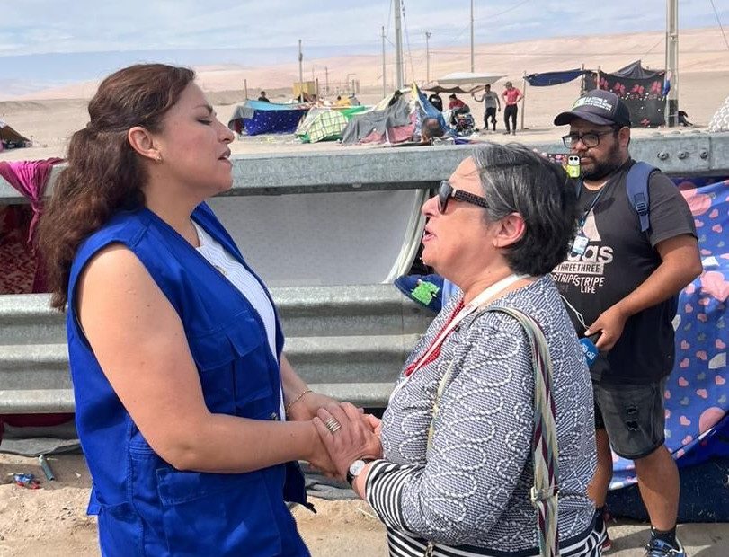La directora del INDH recorrió junto con la defensora (e) de Perú la zona entre los puestos fronterizos de Chacalluta y Santa Rosa donde están las personas que no han podido seguir su viaje. Luego de este recorrido, Contreras y Revollar se reunieron y acordaron pasos a seguir. “Hemos recibido la visita de la defensora del Pueblo de Perú, con el fin de poder coordinar actividades y acciones en favor de las personas que se encuentran en frontera y que desean regresar a sus países. Nuestra acción coordinada busca proteger los derechos humanos de quienes se encuentran en esta situación de vulnerabilidad”, indicó la directora del INDH.