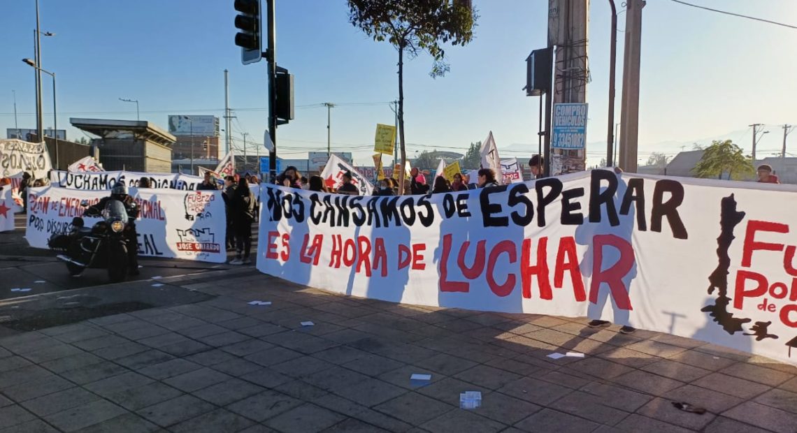 Los integrantes del Comité de Allegados José Ghiardo de la Fuerza Pobladora de Chile, que agrupa a pobladores sin casa de la comuna de La Granja, realizaron una manifestación este martes en la intersección de la avenida Santa Rosa con Américo Vespucio. Con barricadas y pancartas, los manifestantes exigieron al gobierno que cumpla con su Plan de Emergencia Habitacional y les entregue una solución real al grave problema de hacinamiento y viviendas dignas que afecta a la comuna y al país.