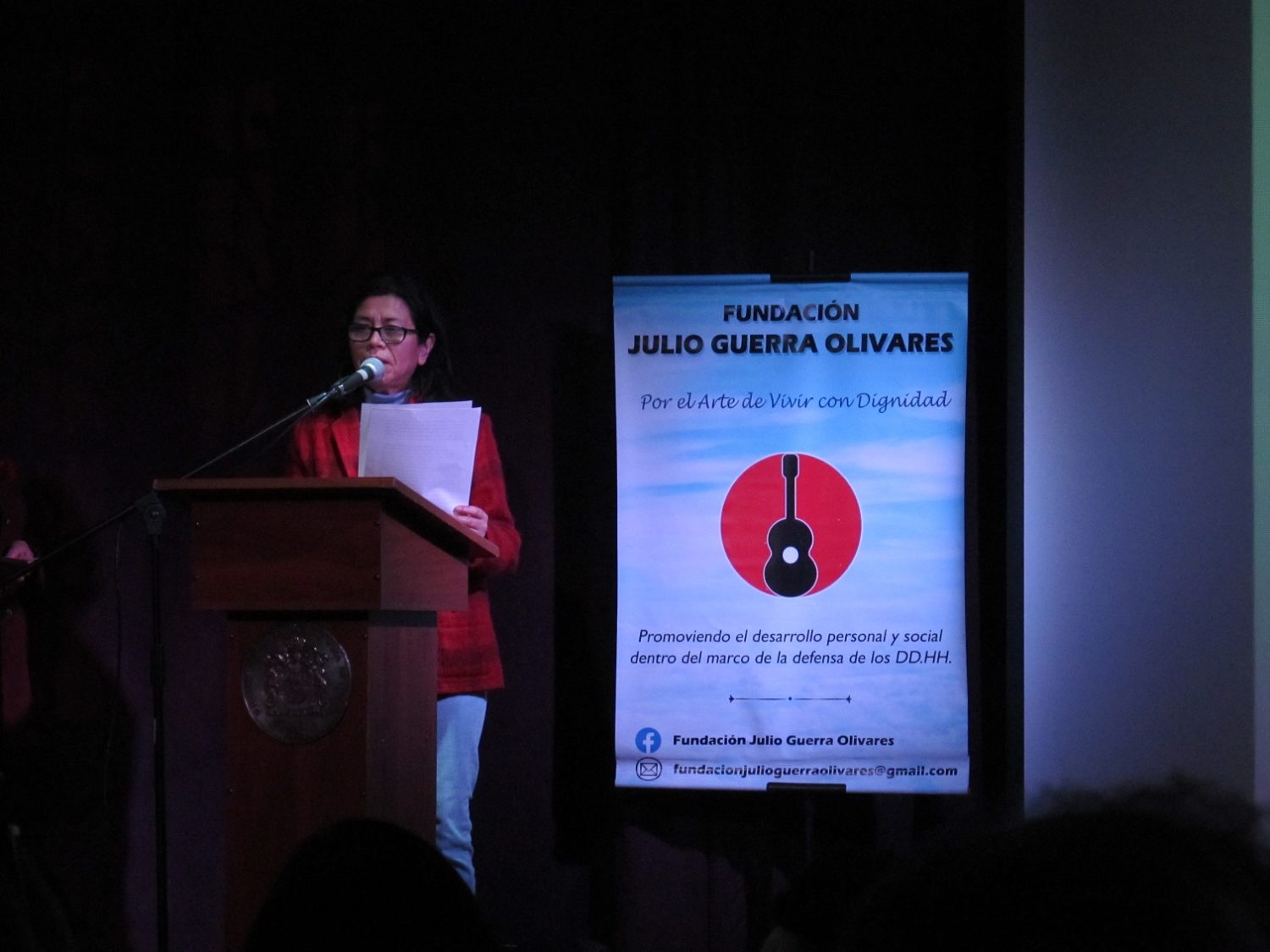 Durante el desarrollo del acto artístico, político y cultural realizado en el Palacio Rioja de Viña del Mar, Juani Alfaro, sicóloga, participante en el Proyecto “Por el Recate de tu Vida y Dignidad”, e integrante de la Fundación Julio Guerra, expuso los fundamentos centrales de dicho proyecto, manifestando lo siguiente:
