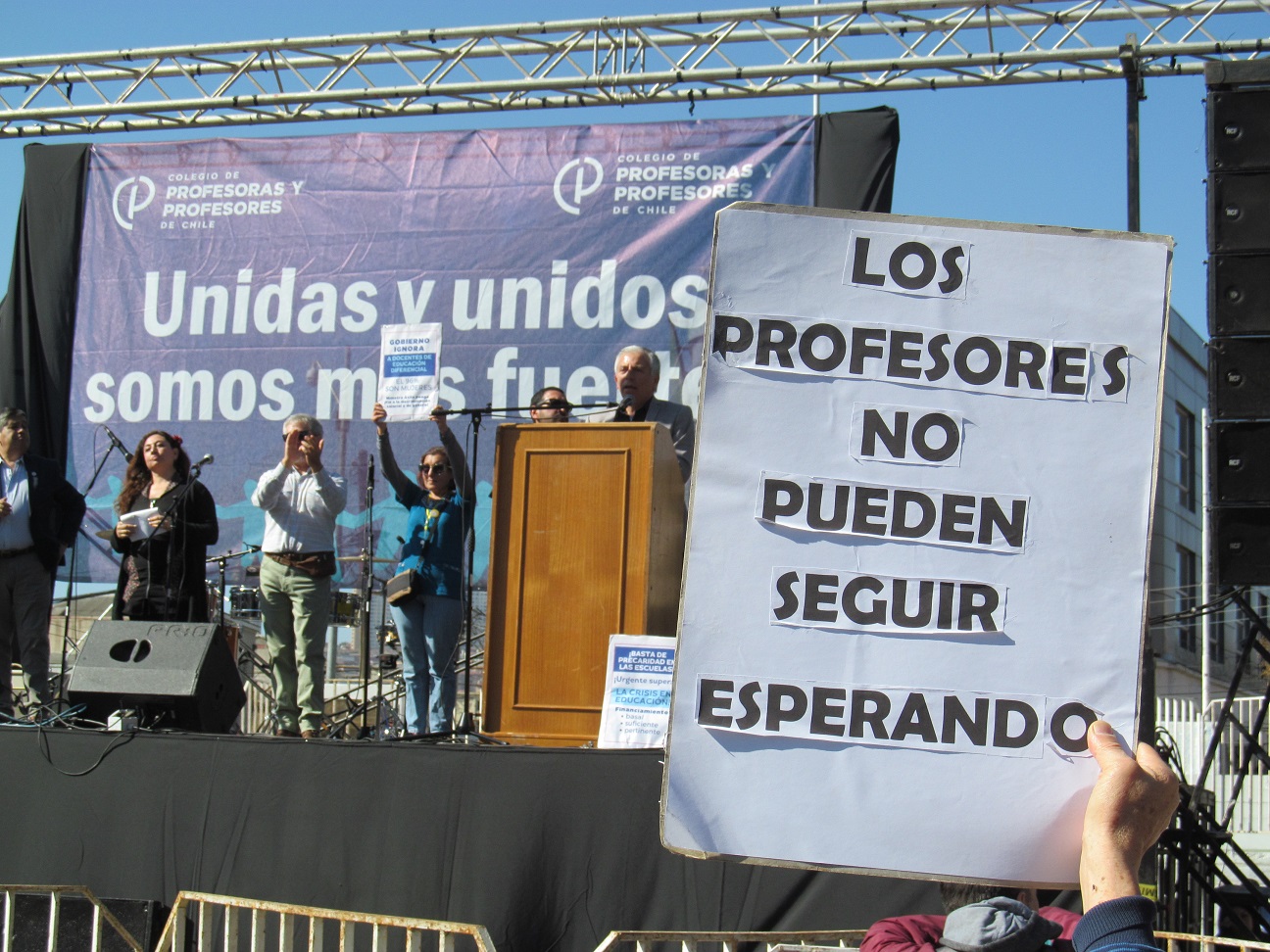“Esto es más de lo mismo. El gobierno actual sigue prometiéndonos cosas, pero eso no se traduce en hechos concretos, son solo palabras que al final se las lleva el viento; mientras no se traduzcan esas palabras y promesas en soluciones reales, para nosotros siguen siendo solo eso, palabras llenas de buena voluntad y promesas para ganar tiempo y desmovilizarnos”, planteó un profesor sureño en la plaza del Pueblo Salvador Allende, mientras el Presidente del Colegio de Profesores daba lectura a la “Carta” enviada por el Ministro de Educación, como respuesta a las movilizaciones del profesorado, donde se expresan una serie de promesas a concretarse en el corto, mediano y largo plazo, dando énfasis en dicha misiva a que las demandas levantadas por los profesores y profesoras están incorporadas en el Programa de Gobierno. “Es muy bonito escuchar lo que dice la carta”, agregó el profesor presente en la movilización, “pero siguen siendo palabras, solo promesas y no hechos concretos”.