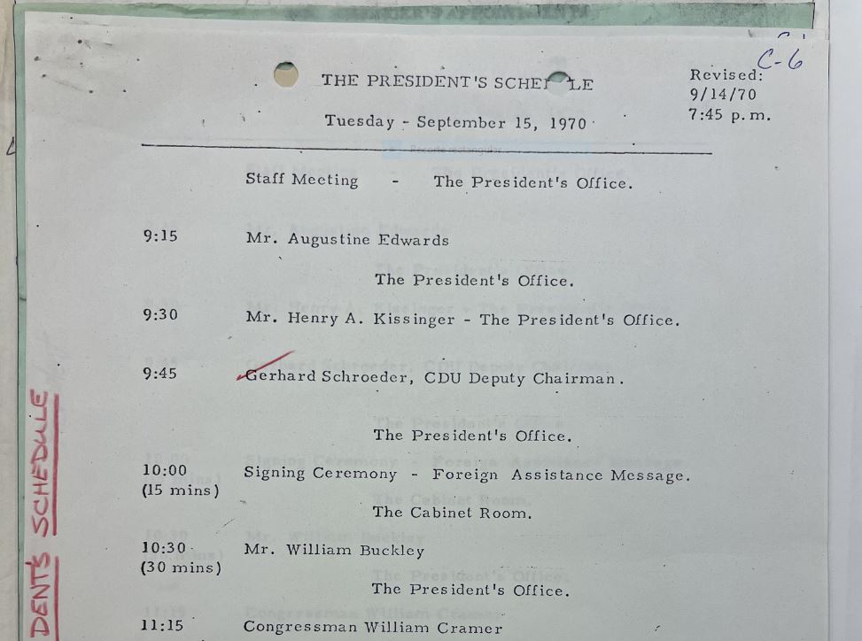 Esa misma tarde, el presidente Nixon ordenó a la CIA que comenzara a operar contra el gobierno de Allende. Los documentos desclasificados arrojan nueva luz sobre las discusiones que tuvieron lugar en esa reunión, aunque aún no conocemos todos los detalles de lo que se dijo en ese encuentro secreto en el Salón Oval.