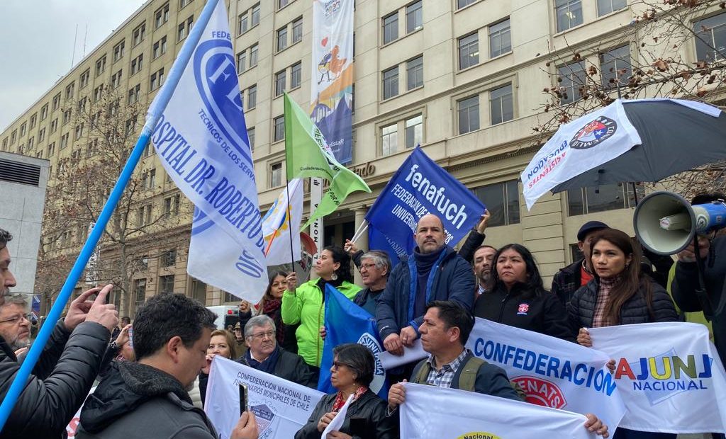 En el marco del proceso de implementación del Protocolo de Acuerdo de la Negociación del Sector Público 2022, este jueves 17 de agosto, las 16 organizaciones integrantes de la Mesa del Sector Público (AJUNJI, ANEF, ASEMUCH, Colegio de Profesores A.G., CONFEMUCH, FENAFUCH, FENAFUECH, FAUECH, CONFUSAM, CONFENATS, FENATS Unitaria, FENTESS, Confederación FENATS Nacional, CONFEDEPRUS y FENFUSSAP), llevaron a cabo un Banderazo en el frontis del Palacio de La Moneda, para hacer entrega de una carta al Presidente de la República, Gabriel Boric, requiriendo el cumplimiento de los compromisos suscritos.