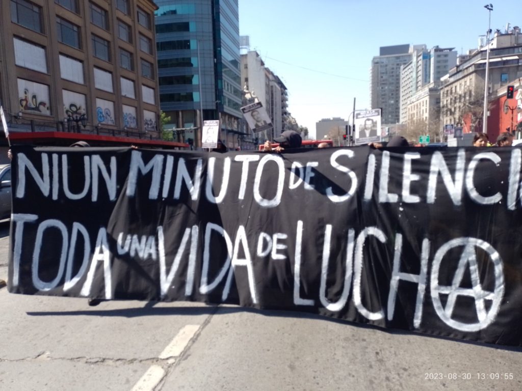 La marcha continuaba con un lienzo que proclamaba: «Ni un minuto de silencio, Toda una vida de lucha», subrayando la determinación de no ceder ante el olvido y continuar la lucha incansable por la verdad y la justicia.
