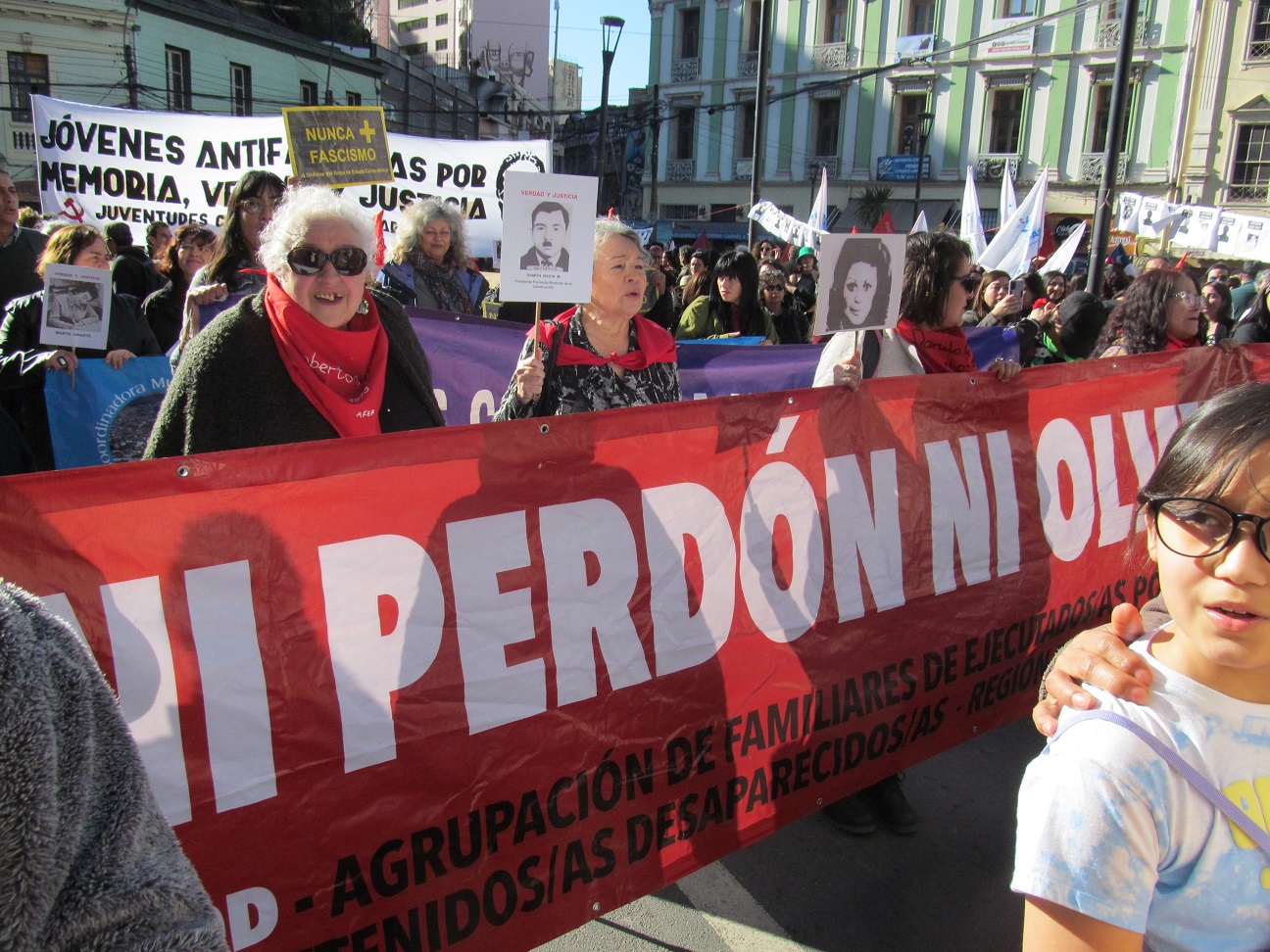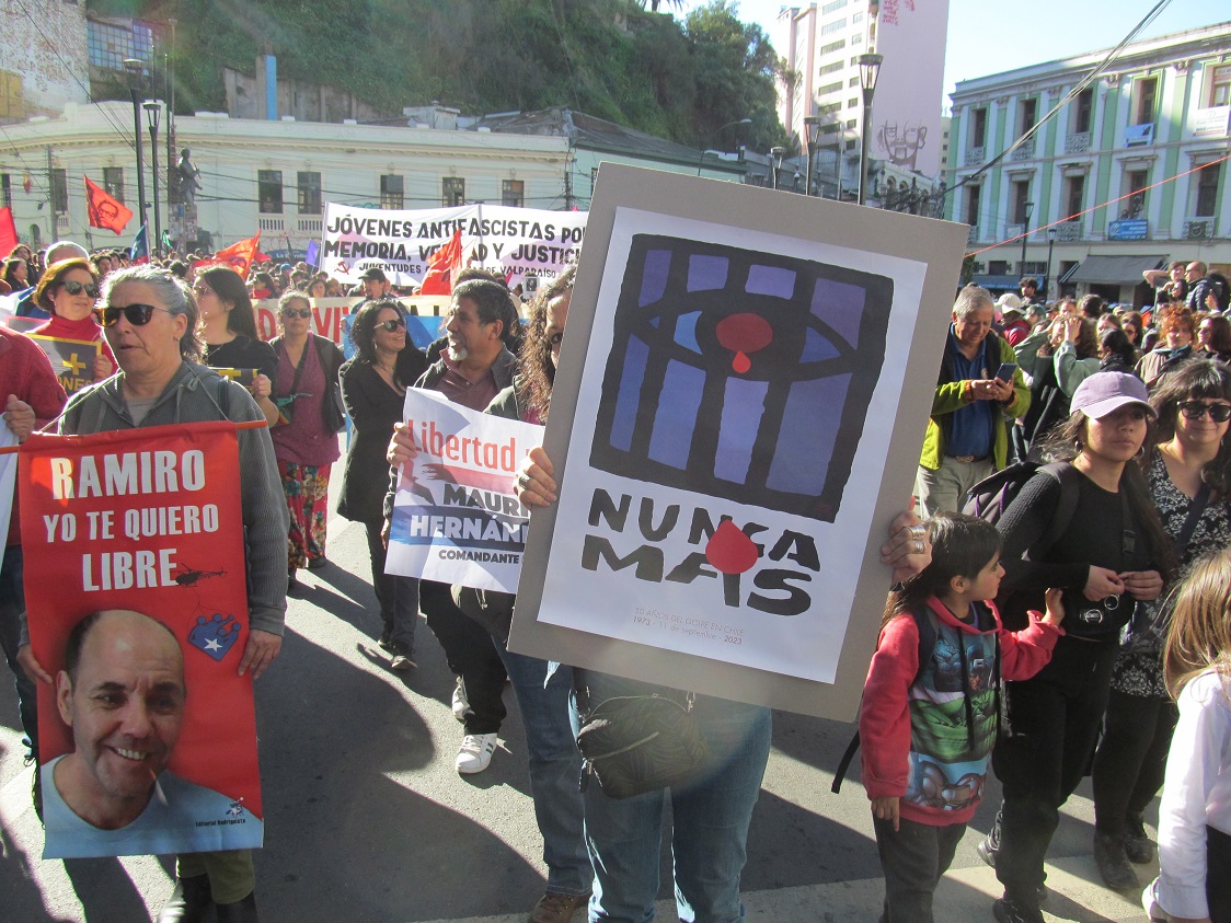 Los lienzos y pancartas con las más diversas consignas, pertenecientes a partidos, colectividades y movimientos políticos y sociales, incluyendo pancartas enarboladas por familiares y amigos de Mauricio Hernández Norambuena, el Comandante Ramiro, exigiendo su libertad, daban cuenta de las características unitarias que tuvo esta movilización y que se realizó, a diferencia de lo que sucedió en Santiago, sin ningún tipo de diferenciaciones odiosas, sectarismos o acreditaciones especiales para poder participar de ella. Como siempre se ha hecho acá en Valparaíso, las porteñas y porteños ocuparon las calles céntricas del puerto para expresar su rebeldía, su constante e inclaudicable lucha por la memoria, la verdad, la justicia y contra la impunidad.