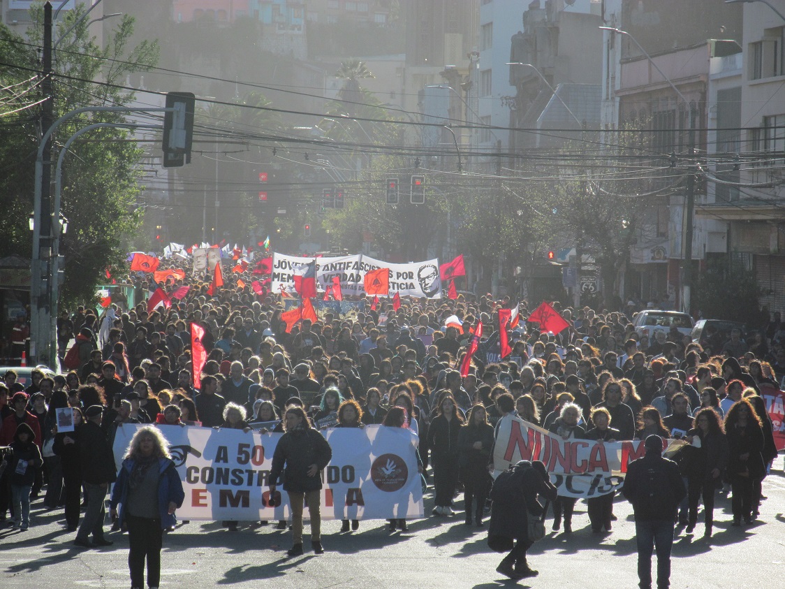 Una multitudinaria marcha, que congregó a miles de porteñas y porteños, se realizó la tarde del 11 de septiembre en Valparaíso. El lugar de encuentro fue la Plaza Aníbal Pinto a las cinco de la tarde, para desde allí marchar hasta la Plaza del Pueblo Salvador Allende, ubicada a un costado del Parque Italia.