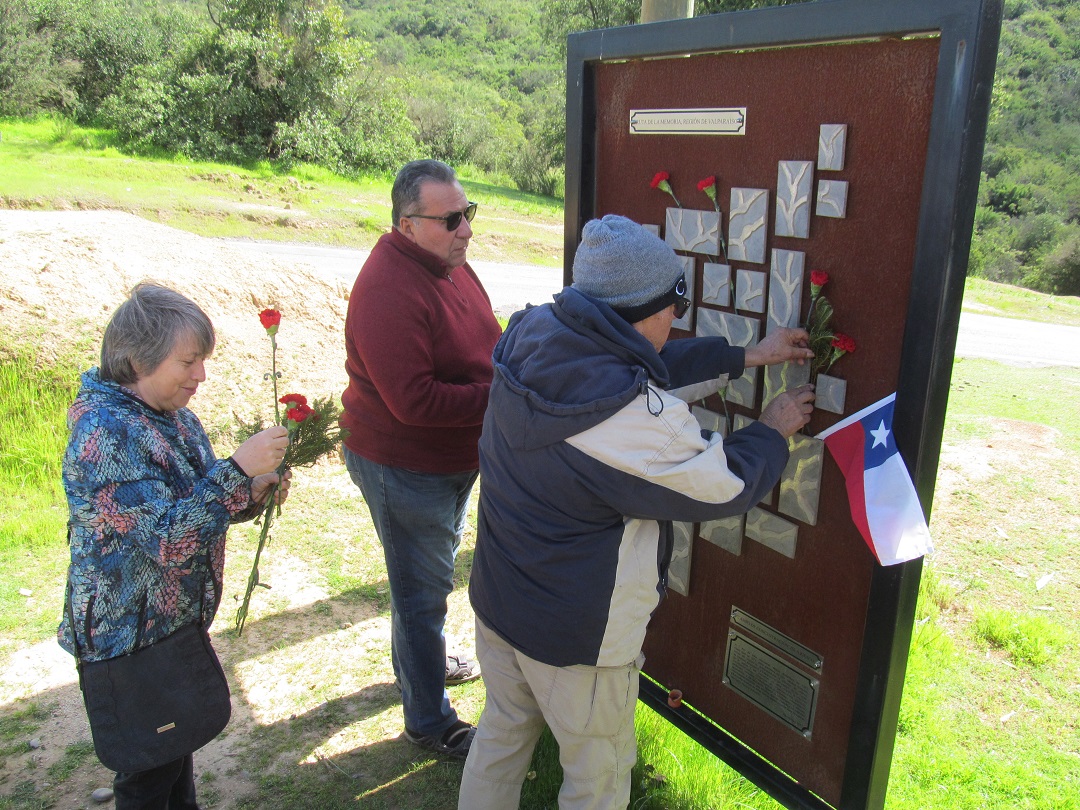 El día martes 26 de septiembre se realizó un encuentro en la Enredadera de la Memoria de Colliguay, donde estuvieron presentes Andrés, Irma, Antonio y Jaime, para hacer un homenaje a los compañeros que estuvieron prisioneros en el Campo de Isla Riesco, colocando claveles rojos en los trozos metálicos que componen a manera de un rompecabezas la placa conmemorativa.