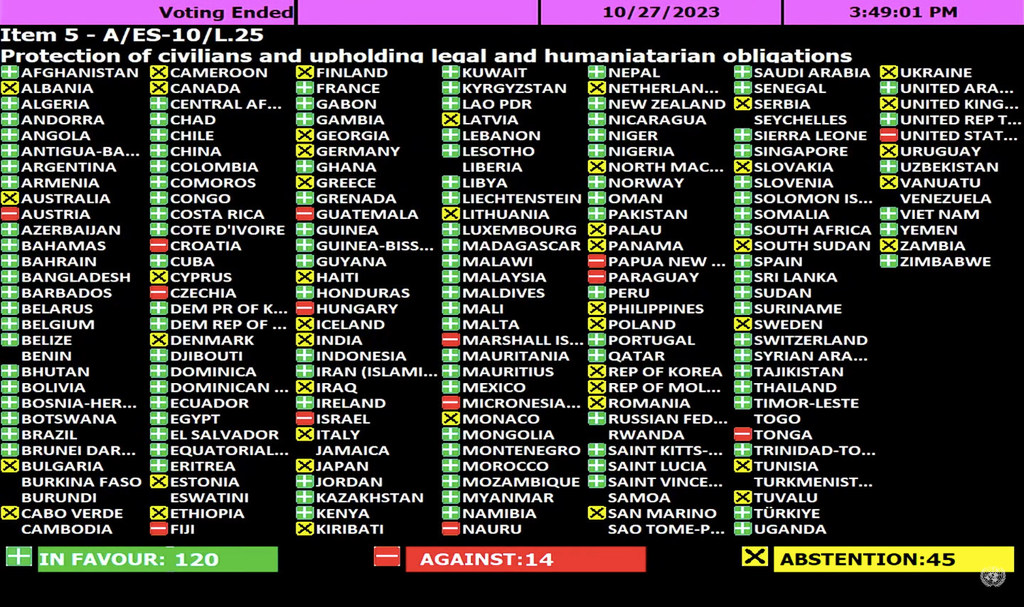 Reunión de emergencia en la Asamblea General de la ONU sobre Gaza: Así votó el mundo