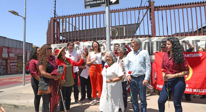 En una emotiva ceremonia organizada por el Partido Comunista de Chile, se realizó el cambio de nombre de la calle Aconcagua -entre San Diego y San Ignacio- por Carlos Contreras Maluje, histórico dirigente que, a los 29 años, fue torturado y hecho desaparecer durante la dictadura cívico militar.