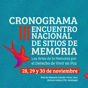 Bajo la consigna “Las Artes de la Memoria por el Derecho de Vivir en Paz” se realizará el III Encuentro Nacional de Sitios y Lugares de Memoria el próximo 28, 29 y 30 de noviembre, en el Sitio de Memoria Estadio Víctor Jara, ubicado en Arturo Godoy 2750, Santiago.