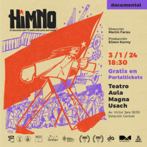 El documental Himno, que muestra como la canción “El pueblo unido jamás será vencido” se expandió por todo el mundo, se exhibirá el próximo miércoles 03 de enero en el Aula Magna de la Universidad de Santiago a las 18:15 horas (Av. Víctor Jara 3659, Metro Universidad de Santiago, Estación Central).