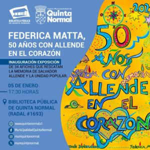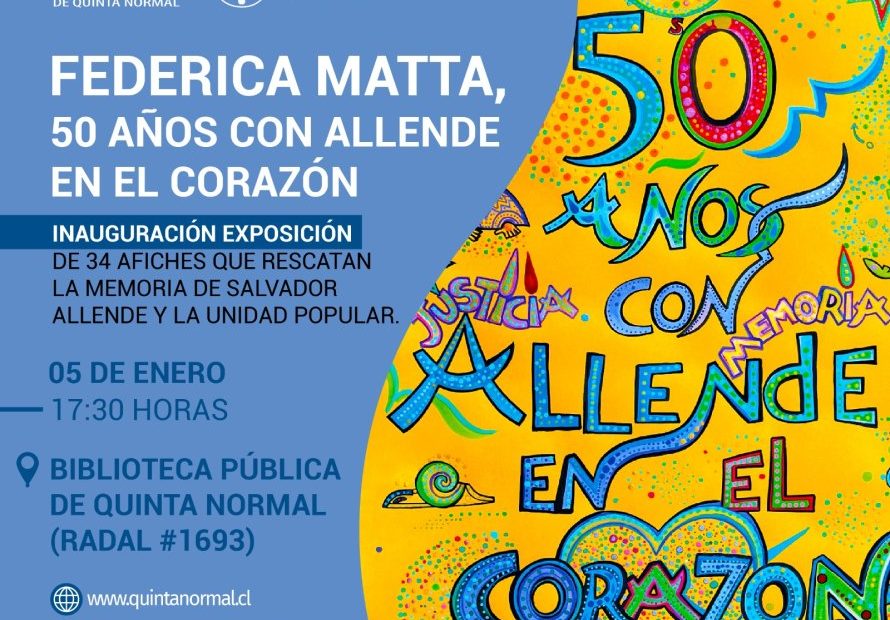 El próximo viernes 05 de enero, se inaugurará la exposición “50 años con Allende en el corazón” que está compuesta por 34 afiches que rescatan la memoria de Salvador Allende y de la Unidad Popular.