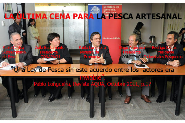 Finalmente, el dirigente expresó que “No es fácil olvidar su gestión en la mesa pesquera de Longueira, cuando provocó el quiebre de CONAPACH, dando pie para que naciera nuestra organización (CONDEPP). Los registros de la época la muestran sonriente cuando compartía mesa con Pablo Longueira; Hugo Arancibia de la Confepach; Rodrigo Sarquis presidente de los Industriales Pesqueros; Pablo Galilea, subsecretario de Pesca, todo esto en octubre de 2011. Los dirigentes de esa época, no olvidamos su gestión a favor de la industria.”