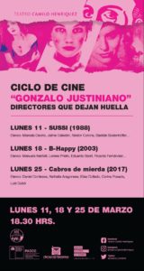 A partir del lunes 11 de marzo, el Círculo de Periodistas de Santiago dará inicio al ciclo de cine gratuito directores que dejan huella, dedicado a la obra y trayectoria del reconocido cineasta chileno Gonzalo Justiniano.