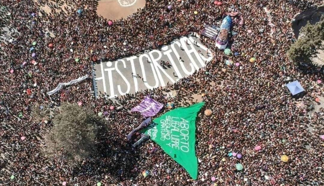 Las manifestaciones del 8M no se limitaron solo a las demandas locales, sino que también se expresó solidaridad con los damnificados por los recientes incendios forestales en Valparaíso y con el pueblo palestino, ante el genocidio cometido por Israel.