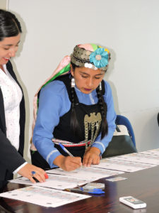“Hoy estamos firmando las escrituras de las tierras luego de un proceso que demoró años. Damos las gracias a quienes nos apoyaron en nuestra lucha, el alcalde, el director regional, y también debemos destacar que siempre nos mantuvimos unidos como comunidad, a pesar de las dificultades, siempre remando para el mismo lado”, indicó Luz Troncoso Salazar, Presidenta de la Comunidad Juan Canío Tranicura, agregando que “con esta firma ya quedamos tranquilos y me siento feliz de haber cumplido con la confianza que me entregó la comunidad como dirigenta para representarlos en este proceso”.
