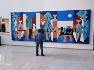 Campos comenzó su trabajo como ayudante de Carreño justamente con esta obra y cuando se le ofreció al artista exponer en la UNCTAD: “Para mí fue un privilegio cuando me invita a participar de este evento nacional tan importante, era un recinto que iba a ser para todos.