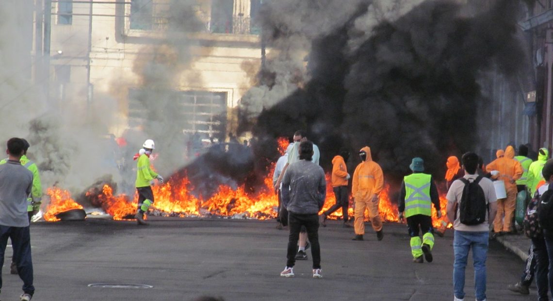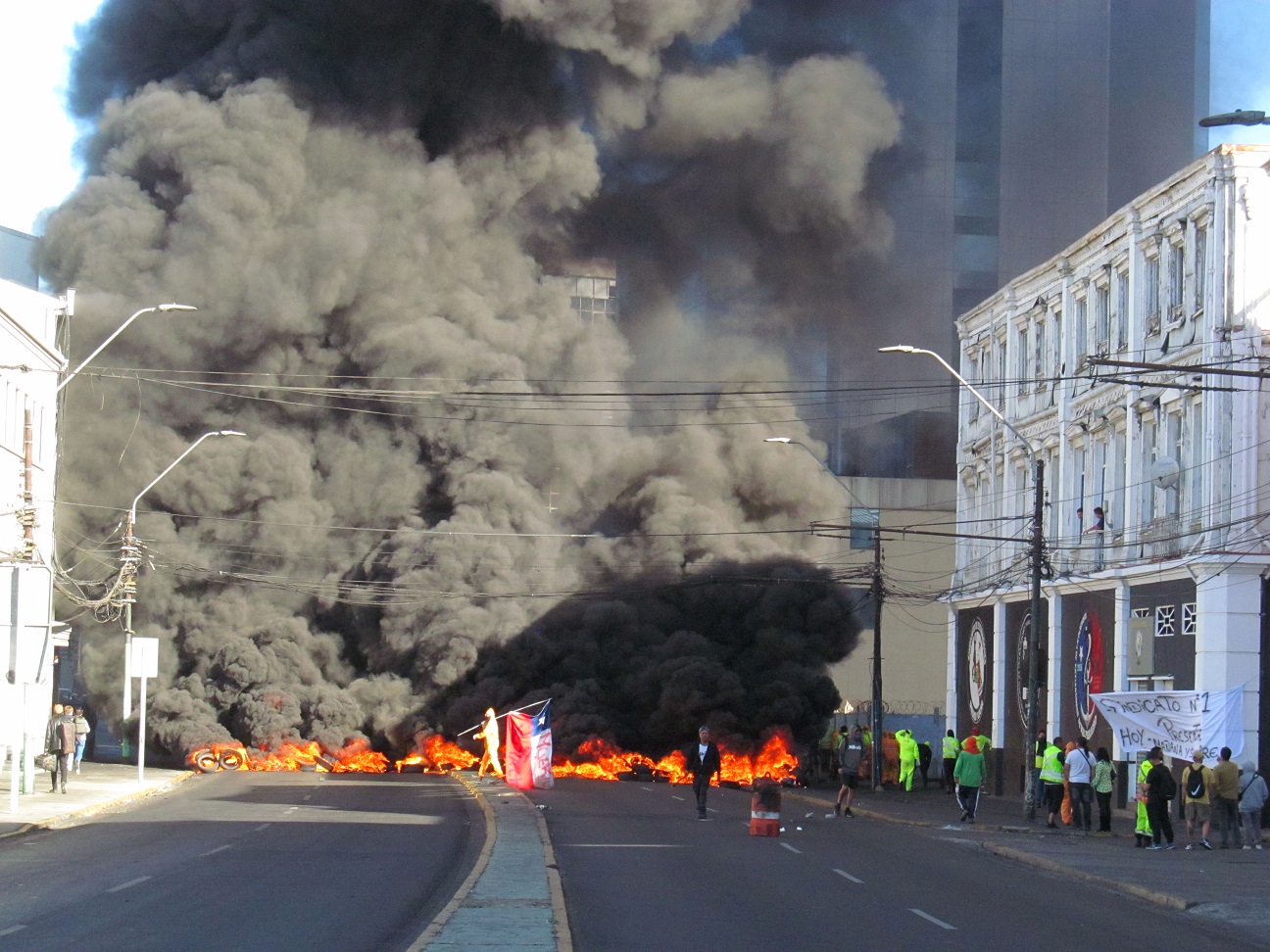El Sindicato de Estibadores N°1 de Valparaíso se sumó al Paro Nacional Portuario convocado por la Unión Portuaria de Chile y el Frente de Trabajadores Portuarios del Centro, realizando enérgicas movilizaciones hoy jueves 4 de abril, instalando extensas barricadas con neumáticos encendidos en las calles Errázuriz y Blanco de la ciudad puerto, a pocos metros de plaza Sotomayor, tanto en horas de la mañana como en la tarde, acciones de protesta coincidentes con las horas punta de la locomoción colectiva y particular.