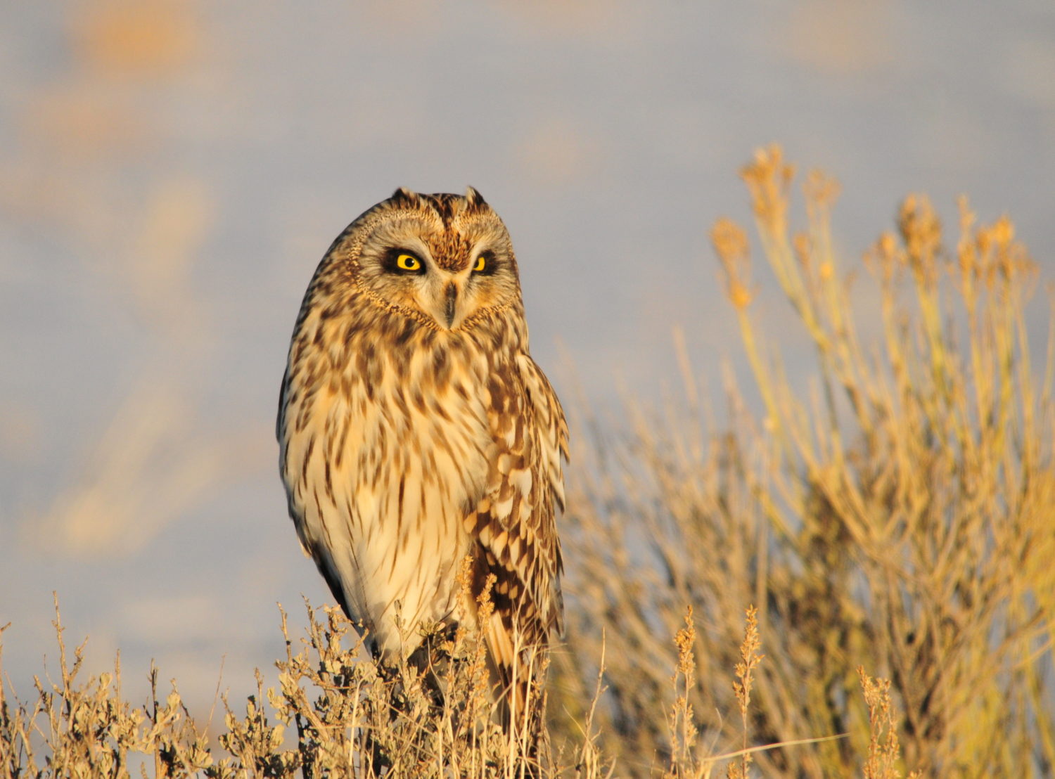 Búho de tamaño mediano que llega a medir 43 cm de largo y a pesar 450 gr. Sus imponentes ojos amarillos y su conducta diferente a otros búhos lo hace muy especial. Todos tenemos la idea de que los búhos son nocturnos y viven en árboles grandes en los bosques , pero esta especie es de carácter más bien diurno y habita en pastizales asociados a lagunas o lagos. Se puede observar en el día posado en el suelo, entre las totoras o en algún poste del cercado predial. Su principal alimentación son los roedores por lo que es un gran aporte en el control de plagas.