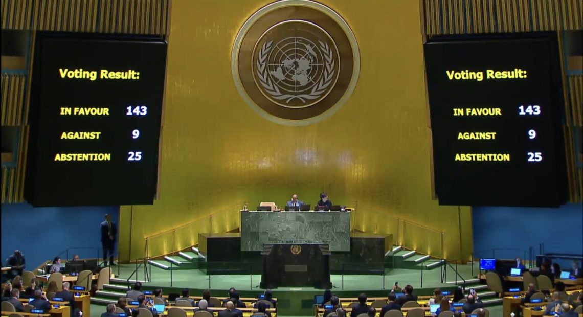 Un paso histórico para Palestina se dio cuando la Asamblea General de las Naciones Unidas este 10 de mayo respaldó de manera abrumadora la solicitud palestina de una membresía plena en la ONU, reconociéndola como calificada para unirse y recomendando que el Consejo de Seguridad reconsidere el asunto favorablemente. La resolución se aprobó con 143 votos a favor, 25 abstenciones y 9 en contra (incluidos Estados Unidos e Israel).