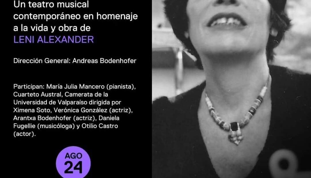 Este año se cumple un siglo desde el nacimiento de Leni Alexander, una destacada compositora y luchadora por los derechos humanos, cuya vida y obra dejaron una huella imborrable en la historia musical y cultural de Chile. En honor a su legado, invitamos a todos a participar en «Los Ruidos de la Memoria», un teatro musical contemporáneo que rinde homenaje a su vida y obra.