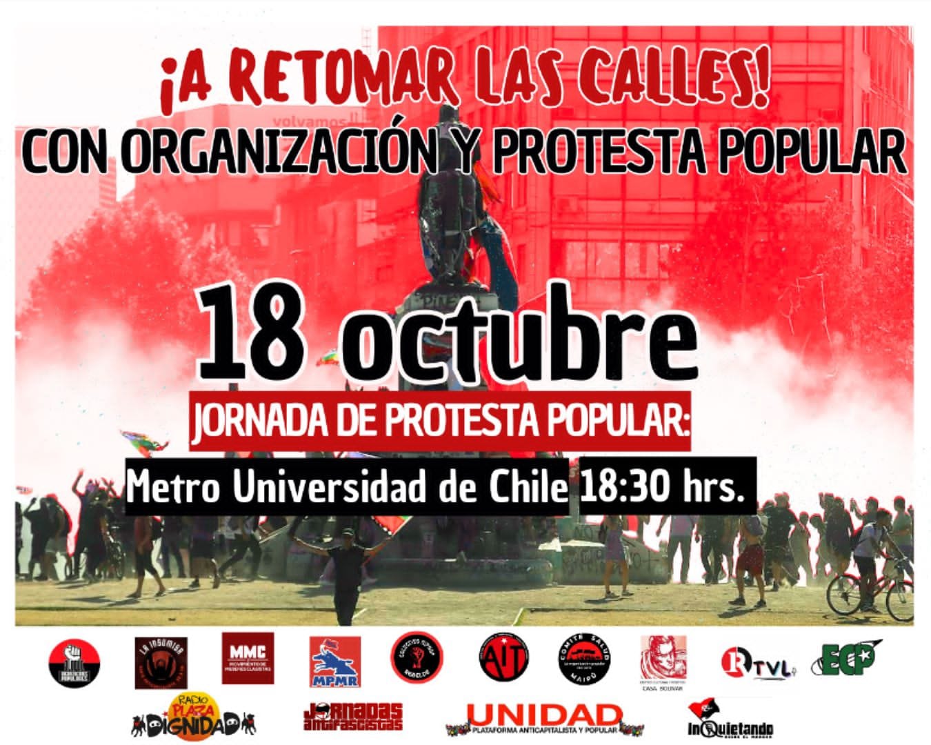 El próximo 18 de octubre, diversas organizaciones sociales y sindicales, incluyendo la AIT (Intersindical), han convocado una jornada de protesta popular en conmemoración de los cinco años del alzamiento popular ocurrido en Chile en 2019. La actividad, que se llevará a cabo a las 18:30 horas en la estación de Metro Universidad de Chile, busca retomar las calles en defensa de las demandas sociales que impulsaron las movilizaciones pasadas.