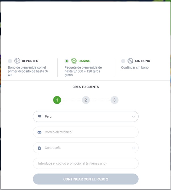 - Selecciona tus preferencias: Selecciona “Deportes” para aceptar la bonificación de Deportes, «Casino» para la bonificación de Casino, o «Sin Bono» para continuar sin bonificaciones.
