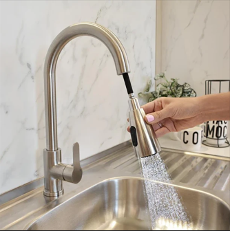 Este tipo de llave permite direccionar el agua con precisión, lo que es especialmente útil cuando se están limpiando ollas grandes o bandejas.