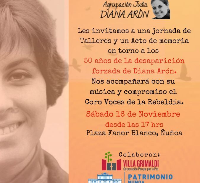 Este 18 de noviembre, se invita a la comunidad a un acto conmemorativo en honor a Diana Arón, quien vivió sus últimos días en el barrio de Ñuñoa antes de su desaparición forzosa en 1974. En la Plaza Fanor Blanco, ante el Memorial inaugurado en marzo por la Asociación de Jóvenes por los Derechos de los Desaparecidos de América (AJDA), se celebrará su vida y su compromiso. Esta ceremonia busca fortalecer la frágil memoria histórica y contribuir a la construcción de una cultura de respeto por la dignidad humana.