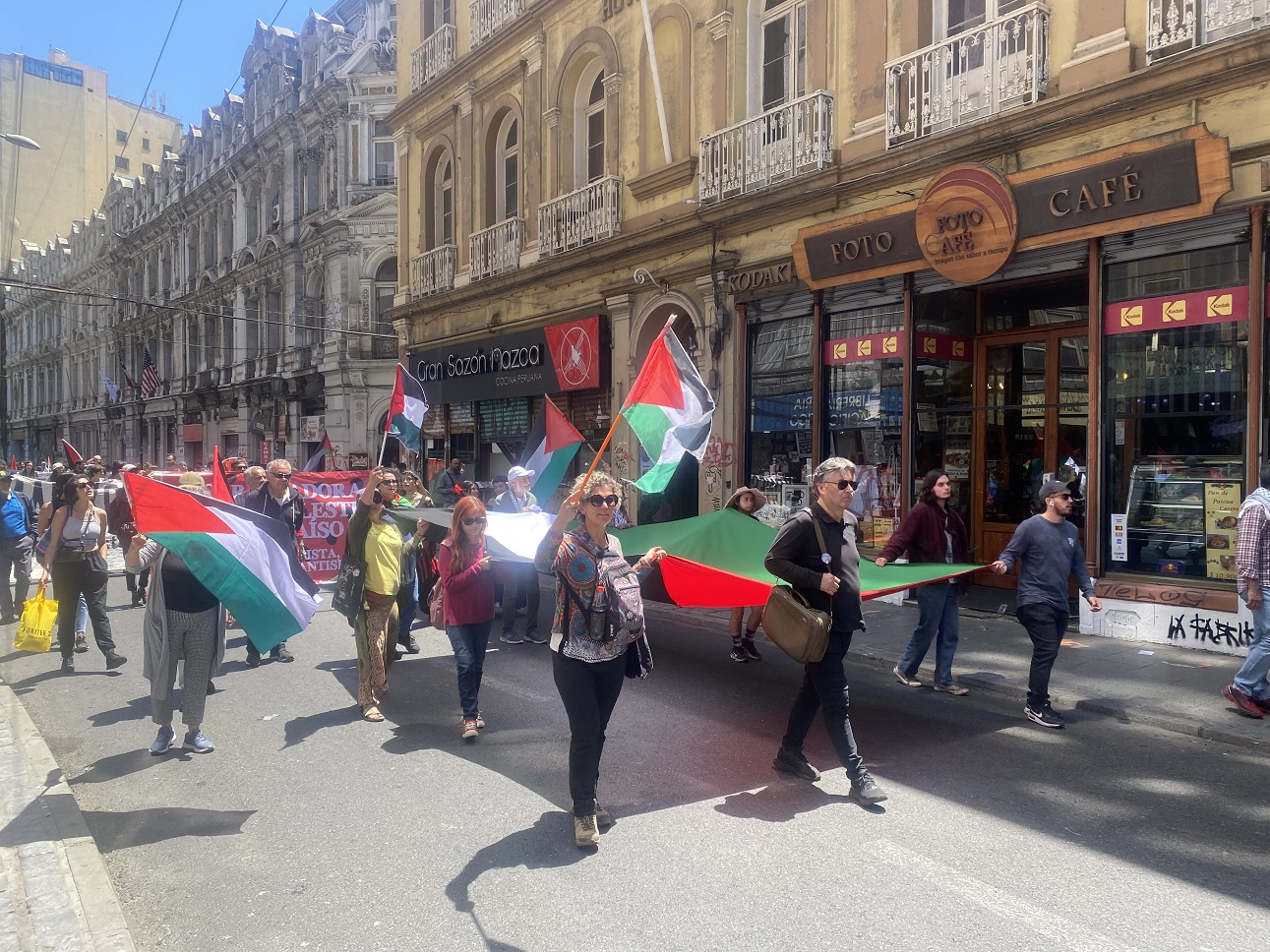 Como parte final de esta movilización, los manifestantes se reunieron en el frontis de la Estación Francia, por Avenida Errázuriz, lugar donde a nombre de la Coordinadora Acción por Palestina Región de Valparaíso, se leyó el siguiente comunicado: