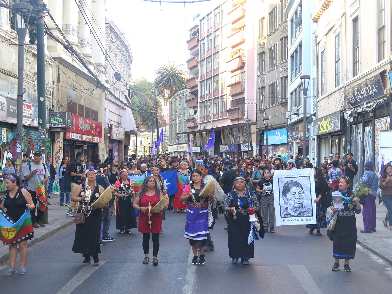 Al cumplirse dos meses de la desaparición de Julia Chuñil Catricura, de la comunidad de Putreguel, comuna de Máfil, Región de los Ríos, diversas organizaciones mapuche, territoriales, ambientales, ecologistas y sociales convocaron a manifestarse a nivel nacional para exigir al gobierno y a las instituciones del Estado el esclarecimiento rápido y total de este brutal caso que lleva nuestra memoria hacia la oscura y siniestra época de la dictadura.
