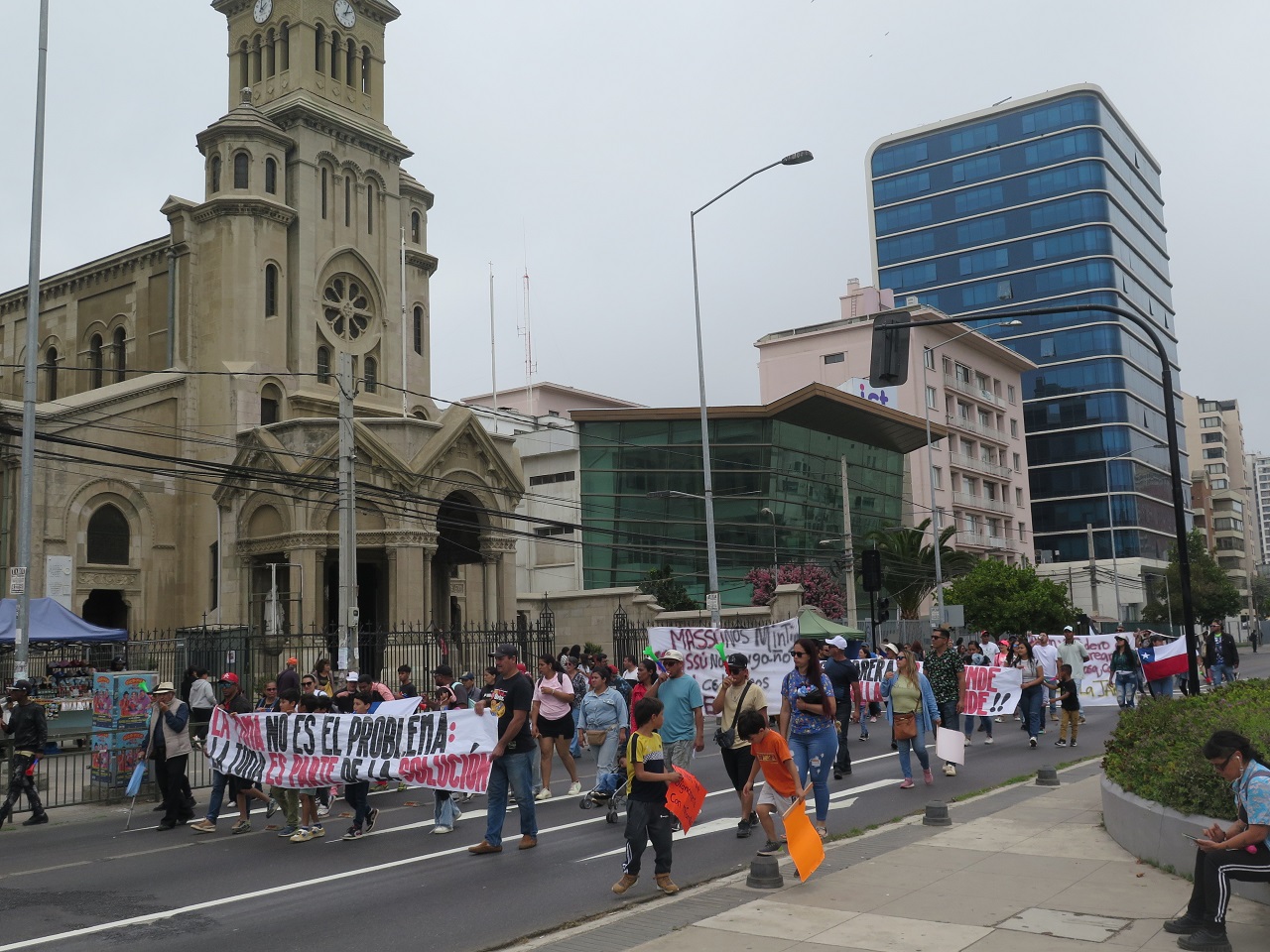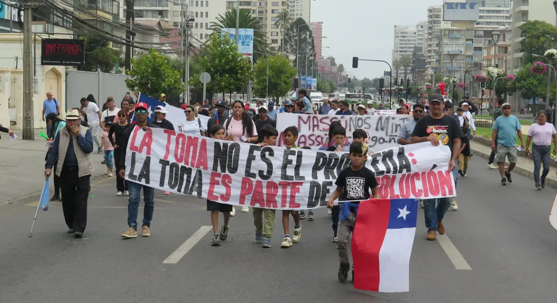 Luego de este mitin en el Reloj de Flores de Viña del Mar, las pobladoras y pobladores junto a sus familias marcharon por calle Álvarez, una de las principales vías de Viña del Mar, para dirigirse hasta la altura de la Quinta Vergara.