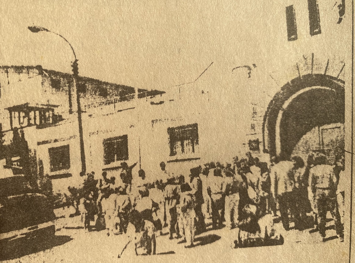 (Fotografía de la ex cárcel tomada del Boletín Codepu V Región donde aparecen familiares de los presos políticos en la puerta principal del recinto)