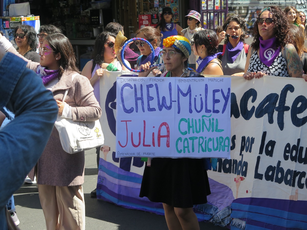 Una de las consignas centrales que se escuchó a lo largo de la multitudinaria marcha de las mujeres que se desarrolló a partir del mediodía por las calles céntricas de Valparaíso, en el marco de la conmemoración del Día Internacional de las Mujeres este 8 de marzo, fue, precisamente: “¿DÓNDE ESTÁ JULIA CHUÑIL”
