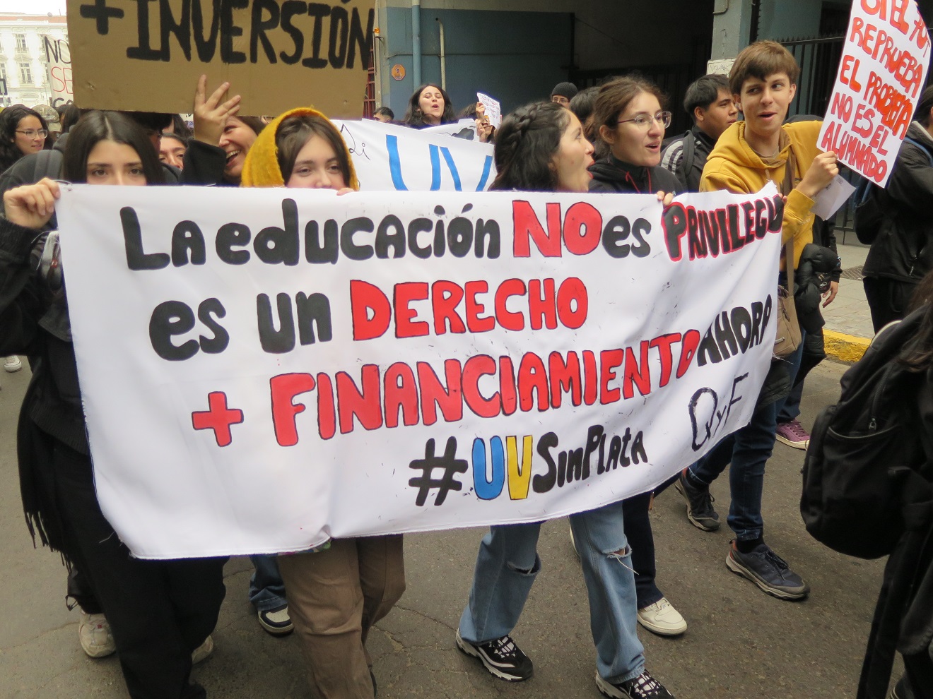 En este último mes, las y los estudiantes universitarios han estado permanentemente movilizados a través de paros en distintas facultades, realizando marchas unitarias en la que han participado estudiantes de las diferentes universidades de Valparaíso y, por otro lado, han adherido y participado en otras movilizaciones junto a los estudiantes secundarios y hoy han marchado junto a las profesoras y profesores. Como manifesté en una nota anterior, con estas manifestaciones es posible observar una reactivación de movimiento estudiantil universitario en nuestra región.