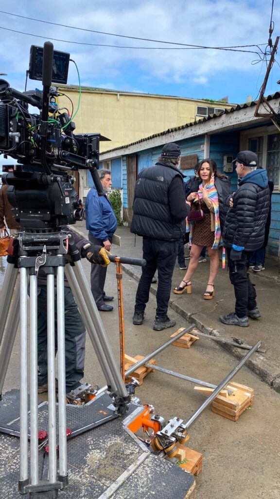 De espalda, Antonio Quercia, director de fotografía; Carmen Gloria Bresky, la negra Ester y Boris Quercia, director. Autor: Pepe del Campo.