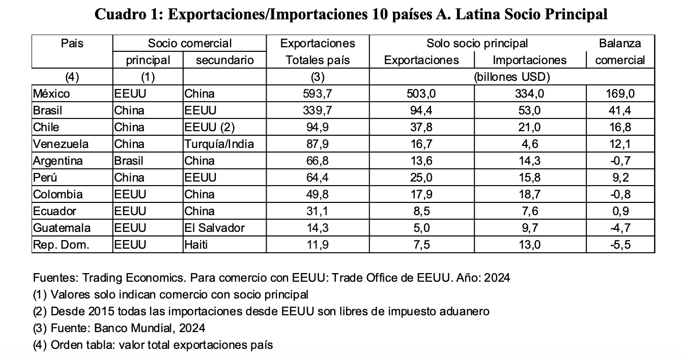 Cuadro 1: Exportaciones/Importaciones 10 países A. Latina Socio Principal