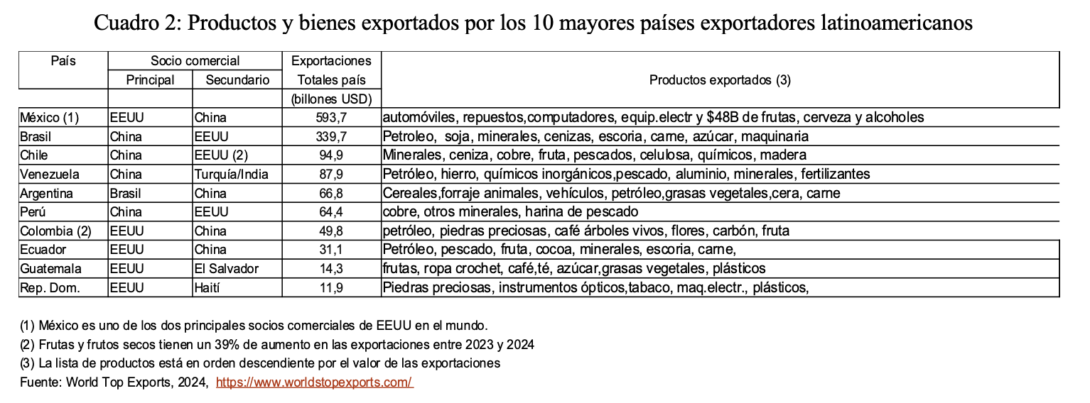 Cuadro 2: Productos y bienes exportados por los 10 mayores países exportadores latinoamericanos