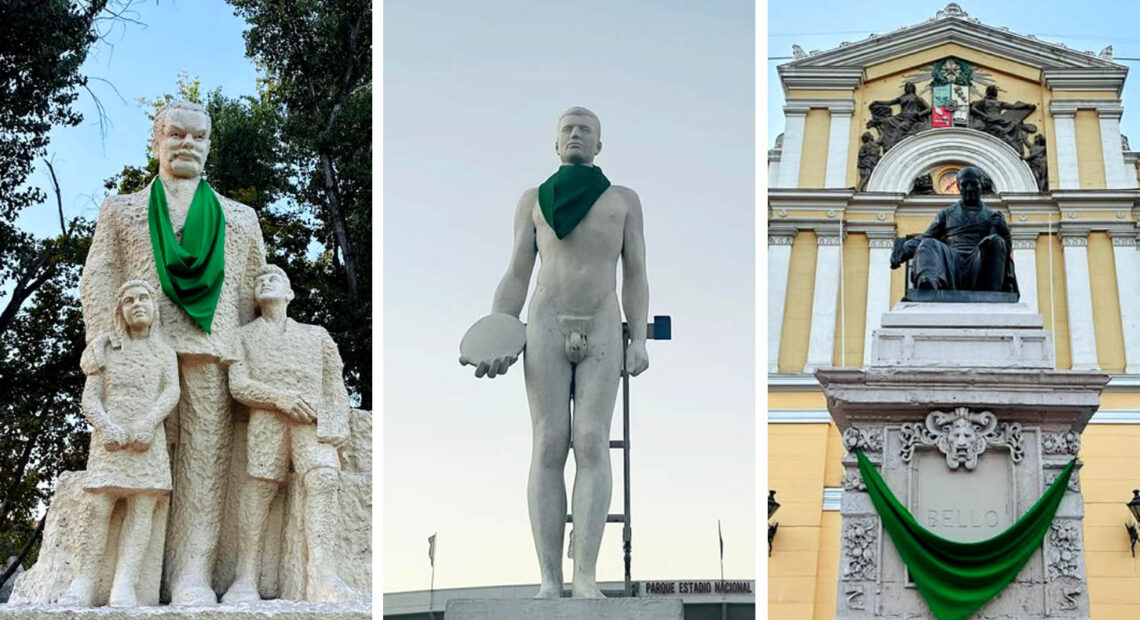 Diversas intervenciones urbanas sobre monumentos santiaguinos dieron inicio este lunes 2 de marzo las actividades preparatorias de la huelga feminista convocada por la Coordinadora Feminista 8M para los próximos 8 y 9 de marzo en la capital. Bajo el nombre de Monumentales, y desplegada en el llamado «súper lunes feminista», la acción consistió en disponer pañuelos verdes sobre esculturas y espacios públicos al llamado «Este 8M la ciudad amanece de verde por los derechos sexuales y reproductivos».