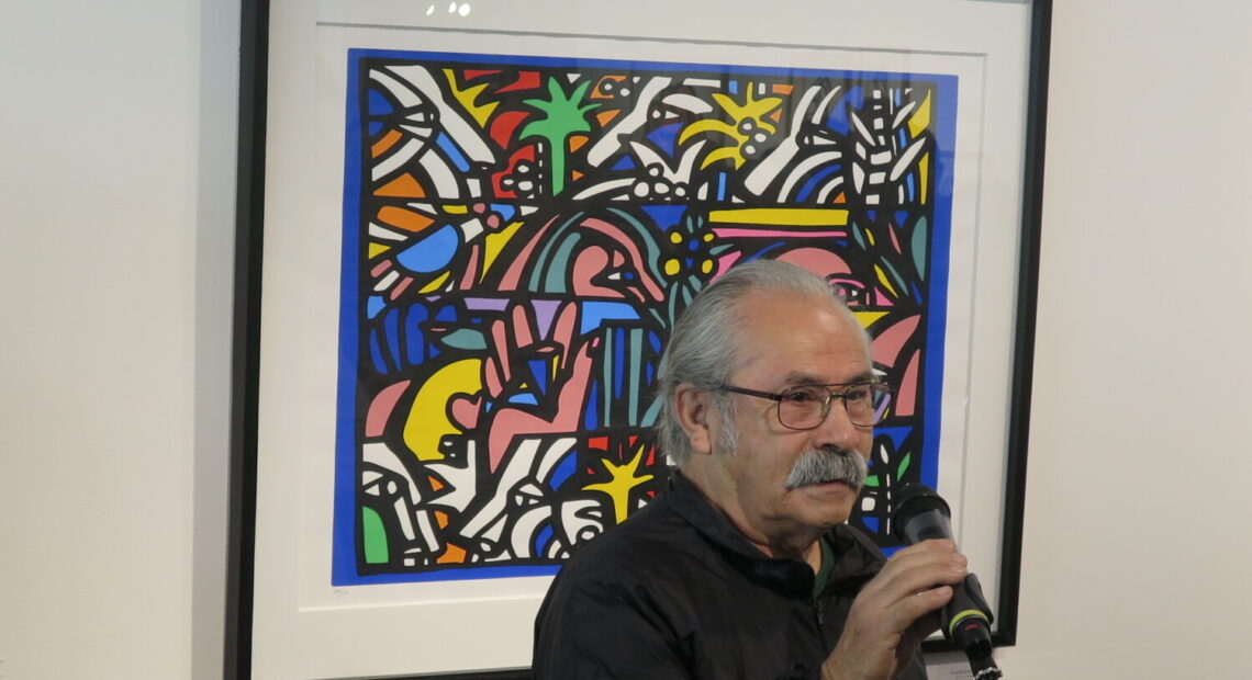 O sea, lo que les quiero decir es que, de alguna manera, podemos producir a través de esta exposición un diálogo cultural entre la unión o el cordón umbilical de la calle con la academia. Por eso es muy importante, y agradezco a la universidad, porque nos está dando una lección de cómo las academias reconocen el trabajo que se ha hecho en las calles, en el arte urbano y eso es muy importante, pero también cómo el arte urbano puede llegar a tener un cierto nivel. En el fondo, el trabajo de la serigrafía, la técnica, el oficio, la producción en el taller, en el nivel en que aquí está, es también una demostración de que se ´puede hacer arte a veces hasta con el barro, con una brocha, con un pigmento o con cualquier cosa.”