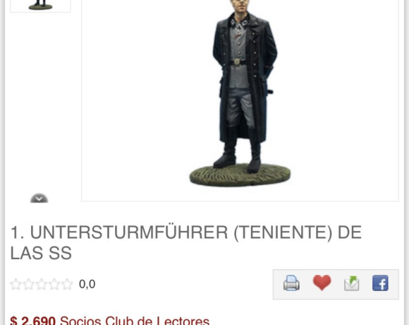 Tiempo de lectura aprox: 48 segundosLa embajada de Alemania en chile se une a las críticas que recibió El Mercurio después de la oferta, que entregaba su Club de Lectores, para la compra de la figura coleccionable de un “Urtensturmfürercauso”, teniente de la SS, organización de seguridad paramilitar impuesta por Adolf Hitler. En su comunicado […]