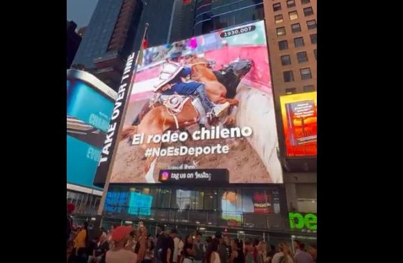 Tiempo de lectura aprox: 1 minutos, 7 segundos Durante la tarde del pasado miércoles 6 de septiembre en la principal avenida de New York, se proyectó un video de la organización Animal Libre contra la práctica del rodeo chileno, en el marco de la campaña #NoEsDeporte que lleva la organización hace unos años. La […]